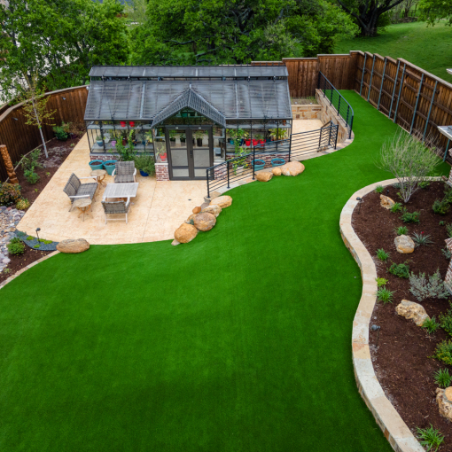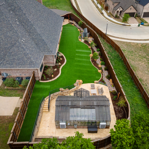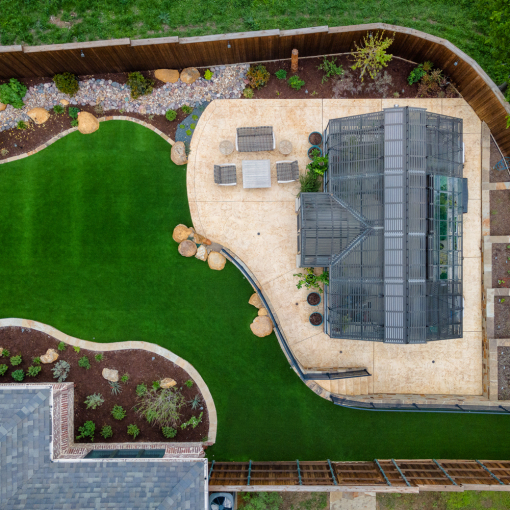 The completed backyard oasis is a harmonious blend of beauty and functionality. The greenhouse serves as a tranquil sanctuary for plants, while the patio provides a refined outdoor living space, perfect for gatherings or quiet relaxation. Thoughtful design elements, including safety-conscious elevation transitions, integrated lighting, and custom-crafted materials, ensure a seamless flow between spaces. Every detail contributes to a luxurious yet practical setting, offering homeowners a retreat that enhances both their outdoor lifestyle and property value.