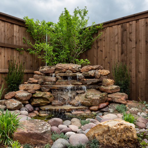 - Black lava rock and natural boulder freestanding water features, enhancing tranquility and ambiance.