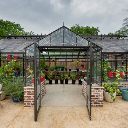- Custom-built greenhouse with high-quality glass panels for optimal sunlight exposure.