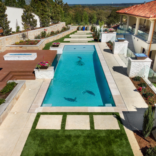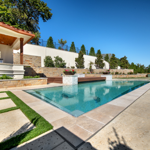 - Wall Construction: A 30-inch tall wall with a Luders stone cap provides a sophisticated structural element that enhances the space’s layered design and visual appeal.