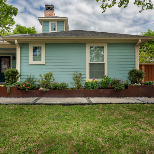 Coordinating the existing infrastructure with the new design presented several challenges, particularly in modifying the front yard to align with the updated layout while preserving functionality. The relocation of irrigation heads and adjustments to lateral lines were essential to accommodate the new design. Additionally, the demolition and regrading of the front porch and driveway required precise planning to ensure proper excavation and drainage. Custom drainage solutions, including polycatch boxes and a rigid PVC system, were installed to protect the property from water accumulation while maintaining a clean, polished look. Thoughtful design flexibility allowed for seamless integration of brick rowlock edges, floating concrete pads, and a patterned concrete driveway to achieve both durability and aesthetic appeal.