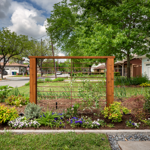 - Horizontal cedar fence and custom metal railings, offering both privacy and architectural refinement.