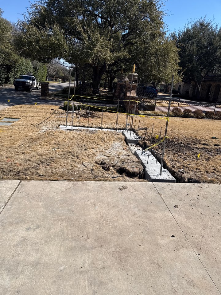 Dallas, TX - Post for custom iron fence with stucco columns going up!!