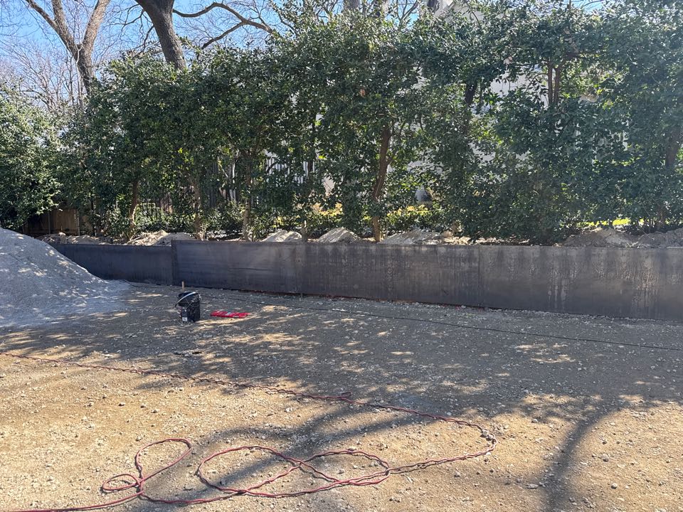 Dallas, TX - 3/8 inch metal ret wall going on to trees and soil