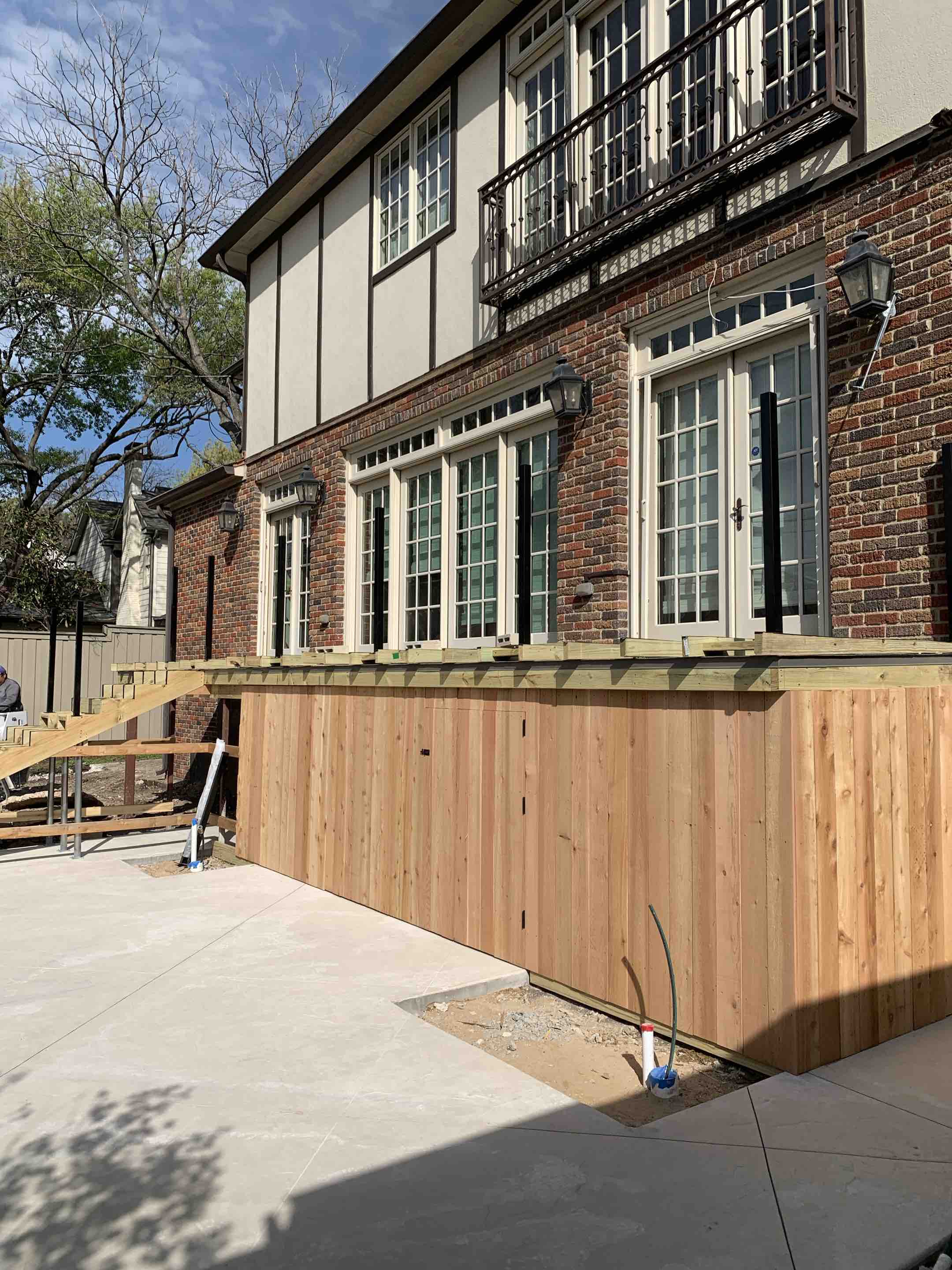 IPE steps and cedar handling for stairs. 8’ board on board fence, custom gate