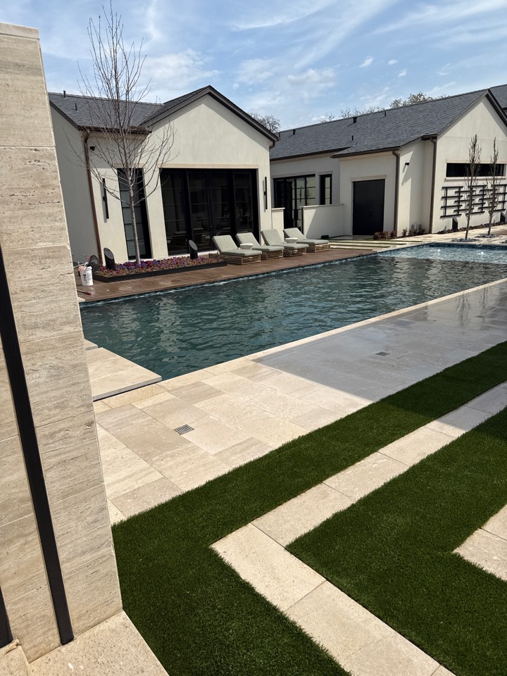 This backyard remodel reimagined a challenging area with steep elevation into a stunning, multi-level outdoor living space ideal for family use. A custom concrete retaining wall allowed for functional terracing, while built-in planters and turf-integrated hardscaping added visual interest and year-round usability. Thoughtfully designed for both beauty and purpose, this backyard transformation reflects Southwest Fence & Deck’s expertise in crafting personalized outdoor living solutions.