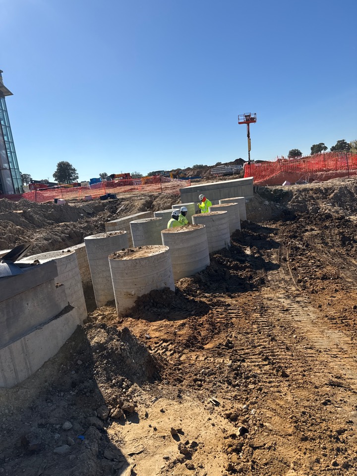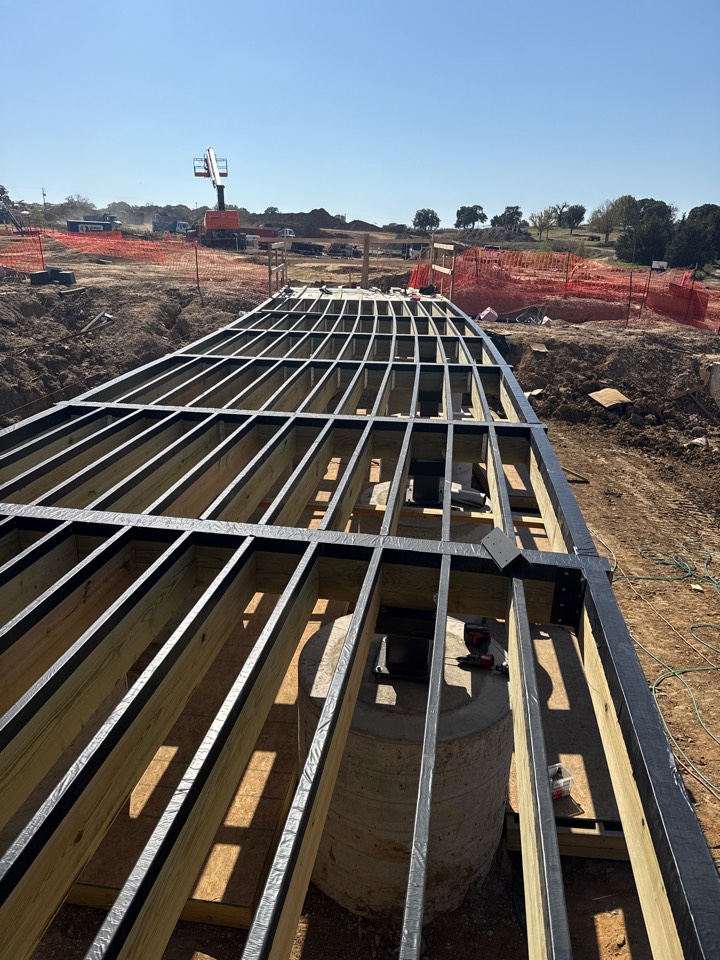 Getting ready to start bridge deck with heavy timber substructure and IPE deck on top of concrete piers