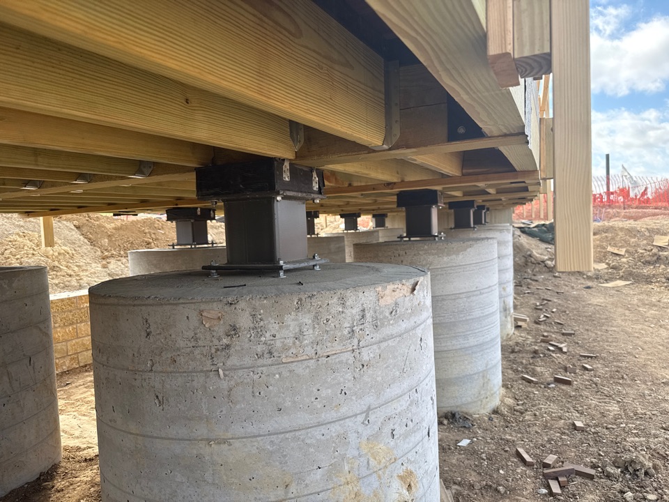 Frame for IPE DECK going on on top of concrete piers and custom metal post extensions