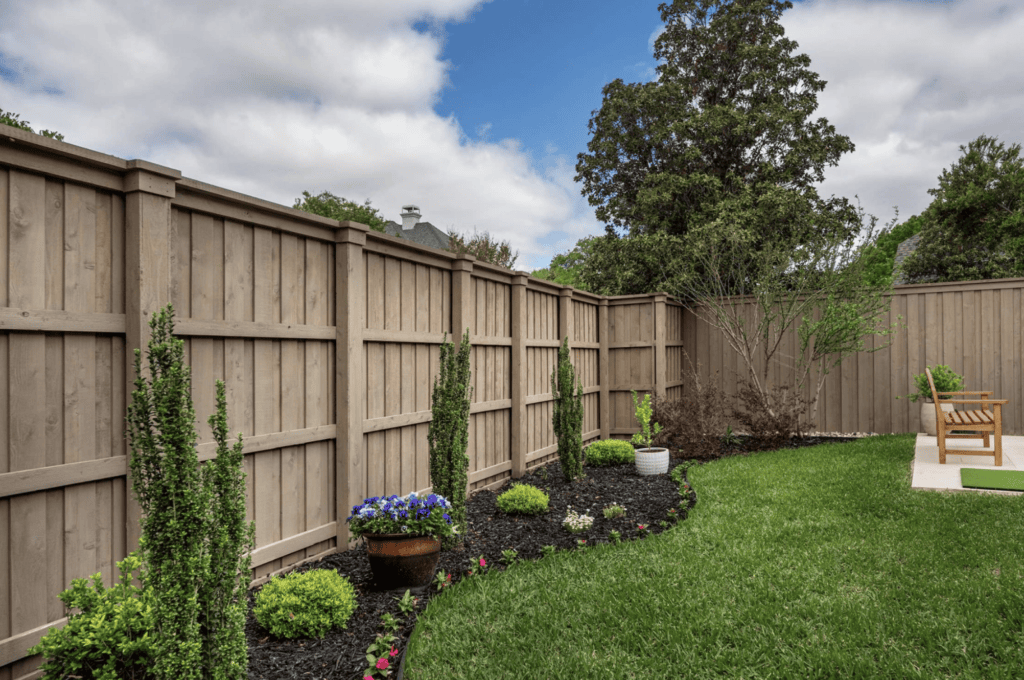 Board-on-board fences remain one of the most reliable choices for privacy in Texas. The overlapping picket design prevents gaps as the wood naturally shifts, which helps maintain consistent coverage over time.